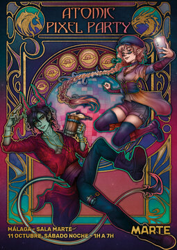 Consigue el merchandising oficial limitado de la Atomic Pixel Party Fantasía Medieval con el arte de la ilustradora Alexael. Posters, llaveros y mucho más con el diseño del cartel de la fiesta. ¡Una vez agotados no se volverán a hacer!