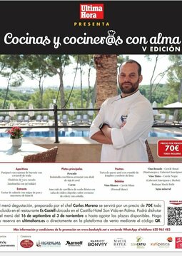 El menú degustación, preparado por el chef Carlos Moreno, se servirá por un precio de 70€ todo incluido en el restaurante Es Castell ubicado en el Castillo Hotel Son Vida en Palma. Podrá disfrutar del menú de lunes a domingo del 16 de septiembre al 3 de noviembre, o hasta agotar las plazas disponibles.
